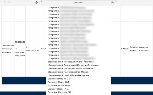Остальные лица, которым сообщено о подозрении (Денис Пушилин, Элеонора Федоренко, Светлана Майборода, Анатолий Павленко, Владимир Чепрасов и Юлия Супрун), пока не проходят обвиняемыми по делам, рассматриваемым судами. Их производства находятся на стадии досудебного расследования.
