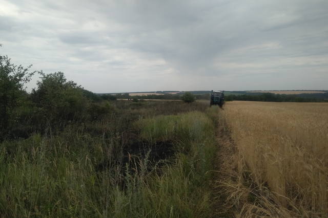 К месту происшествия немедленно прибыло отделение службы спасения в составе 5 спасателей. На момент их прибытия горела трава на площади около 250 кв.м. Благодаря оперативным действиям удалось предотвратить распространение огня на пшеничное поле.
