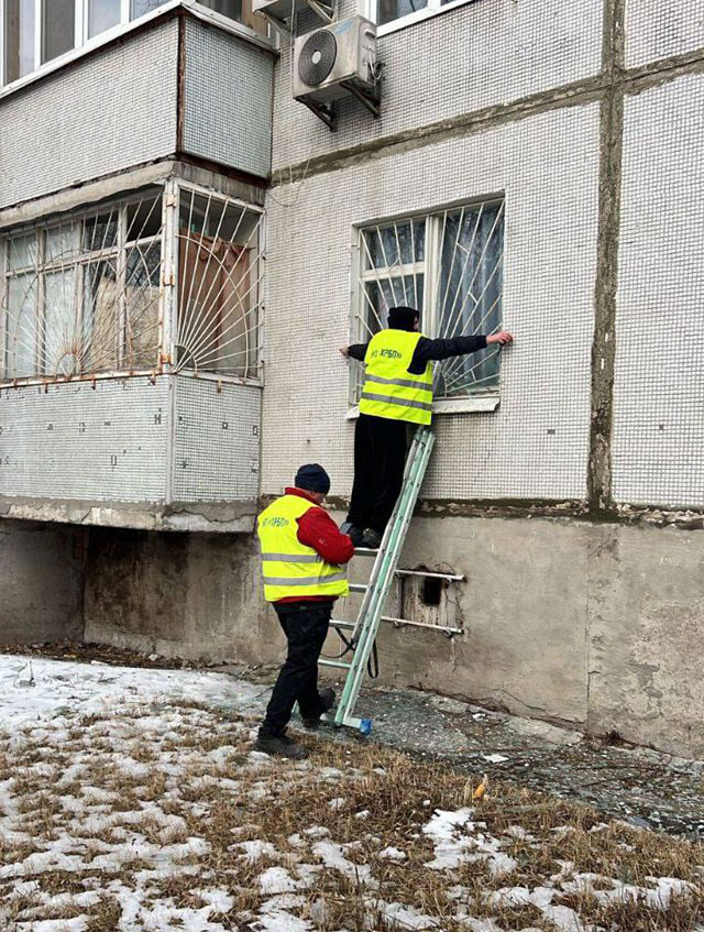 Специалисты КП «Харьковское ремонтно-строительное предприятие» в Харькове закрывают поврежденные оконные контуры в пострадавших домах. Параллельно в Салтовском районе бригады КП «Дорремстрой» проводят уборку битого стекла и крупногабаритного мусора, образовавшегося в результате прилетов.