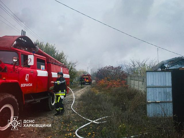 В Чугуевском районе Харьковской области в результате российского удара беспилотниками произошел пожар в жилом секторе села Рубежное Волчанской громады.