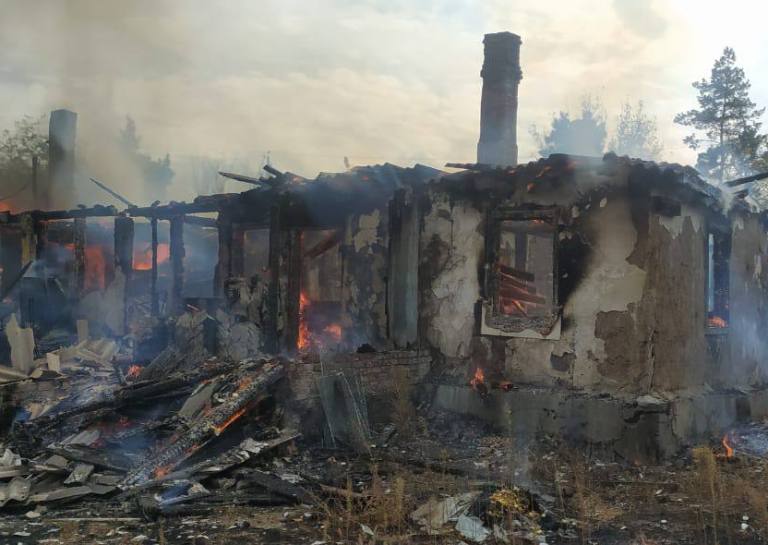 По данным Синегубова, в результате утреннего обстрела уничтожен жилой дом на три квартиры. От попадания снаряда здание загорелось, пострадали трое жильцов: