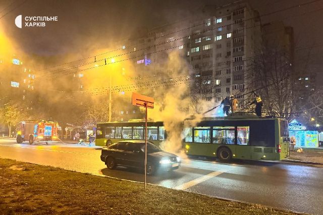 5 ноября в Харькове загорелся троллейбус. Об этом «Суспільне».