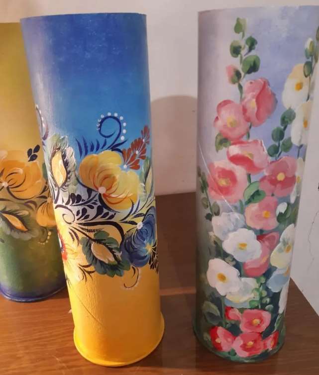 «Раскрашиваю гильзы разных калибров и ящики из-под снарядов. В своих работах использую цветочные орнаменты, патриотические мотивы, а в последнее время воспроизвожу на металле шевроны военных подразделений. Все сюжеты рождаются в творческом процессе или создаются по просьбе волонтеров. Работу выполняю самостоятельно и при сотрудничестве коллег Маргариты Гризовой и Ольги Никитиной. К творческому процессу присоединяются и ученики студии», — рассказывает художница.