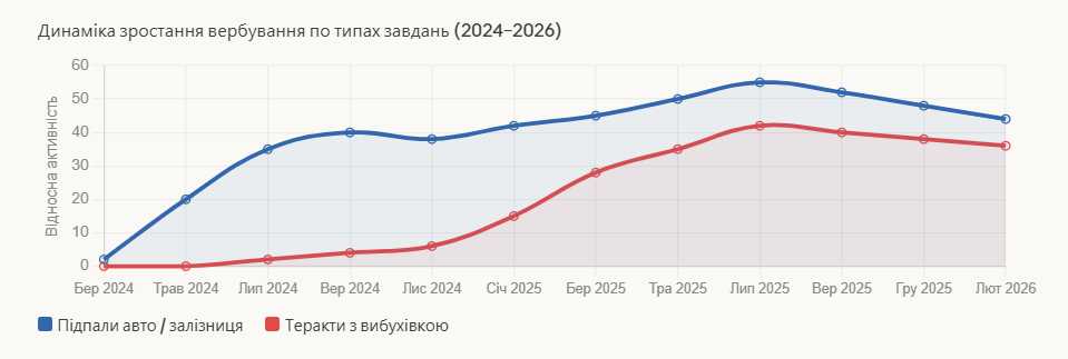 Поджоги автомобилей ВСУ и диверсии на железной дороге активизировались с мая 2024 года, а вербовка для организации взрывов, в том числе детей, началась с начала 2025 года. То есть ФСБ сознательно повышает ставки — от простых поджогов до полноценных терактов с использованием самодельных взрывных устройств.