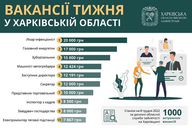 Всего по состоянию на 8 декабря в Харькове и Харьковской области актуальны почти 1000 вакансий. С полным перечнем можно ознакомиться по .