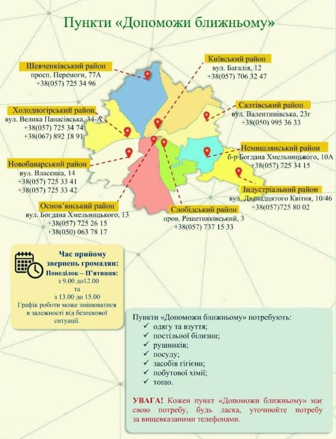 Получить и сдать вещи в пунктах «Допоможи ближньому» можно с понедельника по пятницу, с 9:00 до 15:00 (перерыв – с 12:00 до 13:00), в территориальных центрах всех районов города.