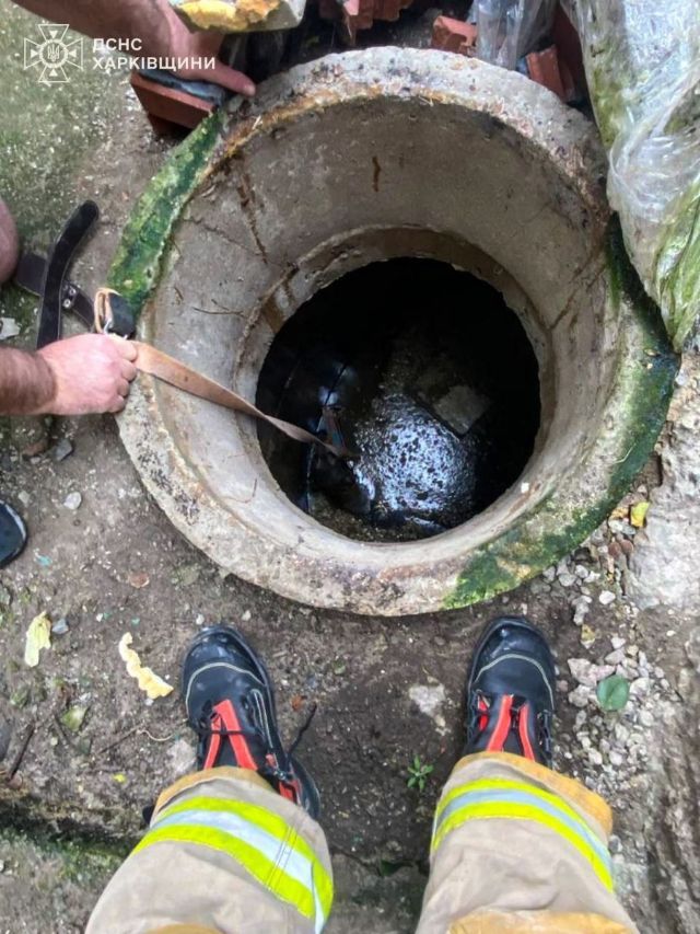 В Шевченковском районе Харькова собака упала в канализационный колодец с нечистотами на территории частного дома.