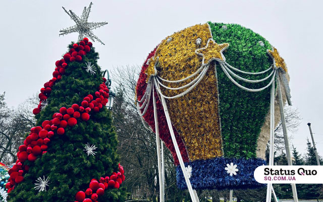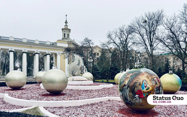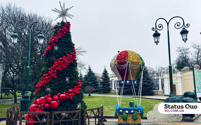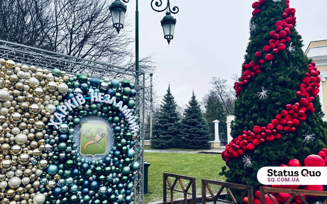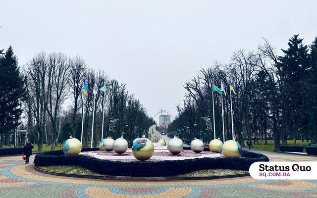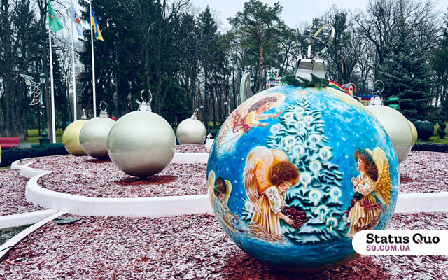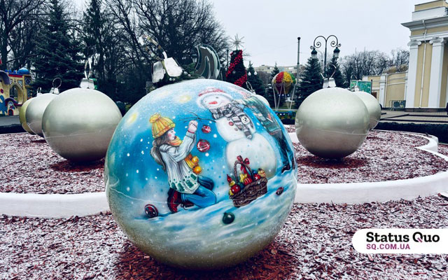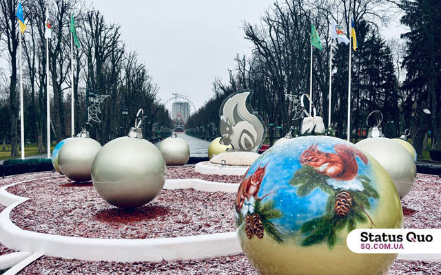 Центральный парк Харькова украсили к новогодним праздникам. На клумбе у входа в парк с улицы Сумской разместили огромные новогодние шары. Неподалеку стоят елка, фотозона «Харків незламний» и инсталляция «Путешествие к мечтам».