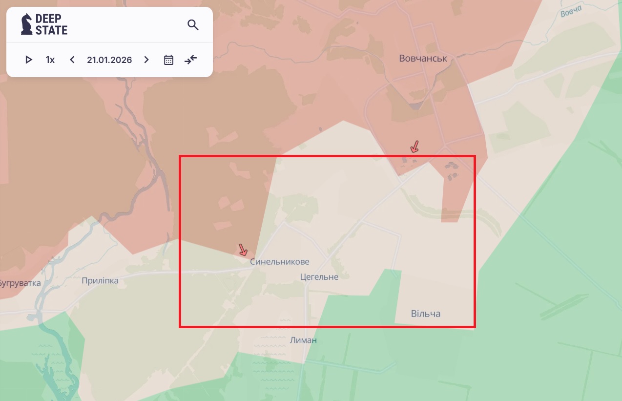 По состоянию на вторую половину января 2026 года, ситуация остается критической и динамичной. Не сумев полностью вытеснить ВСУ из города лобовыми атаками, российские войска сменили тактику. Сейчас они предпринимают попытки обойти Волчанск с запада в районах населенных пунктов Синельниково и Вильча.