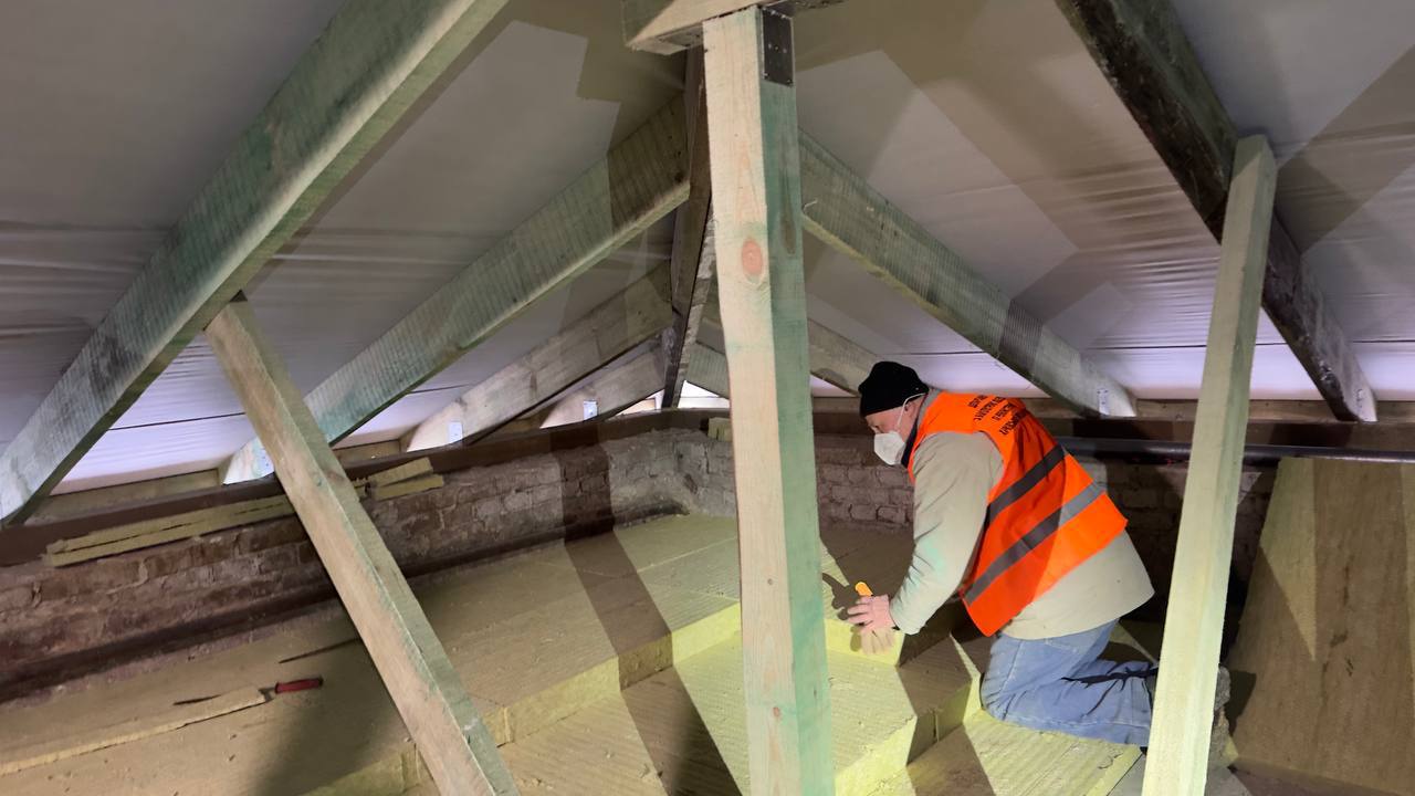 - на чердаке утепляют пол.