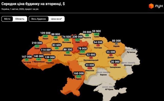 Средняя цена частного дома в Харькове – 85 000 долларов. В течение года цена не изменилась.