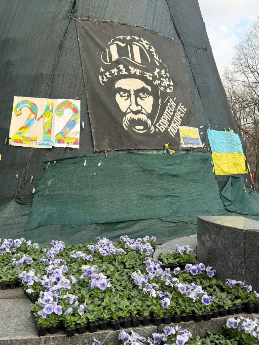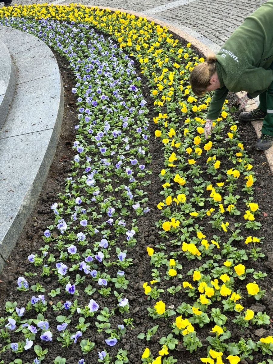 Работники Центрального парка приступили к посадке первой в этом году клумбы возле памятника Тарасу Шевченко. Для неё было выбрано 12 тысяч саженцев жёлтой и синей виолы.