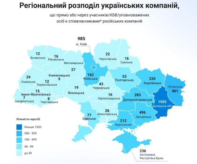 Также в Украине по состоянию на ноябрь 2025 выявлено 686 активных ФЛПов, связанных с российскими юрлицами. В Харьковской области таких 52.