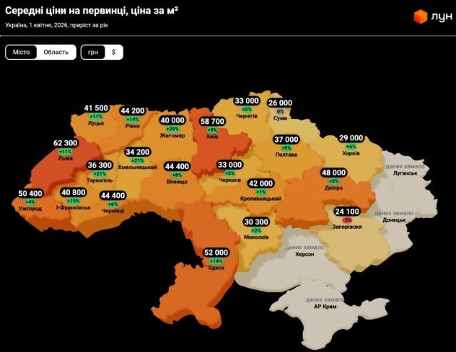 Средняя цена одного квадратного метра в апреле в Харькове составляла 29 тыс. грн. Рост в течение года – 4%.