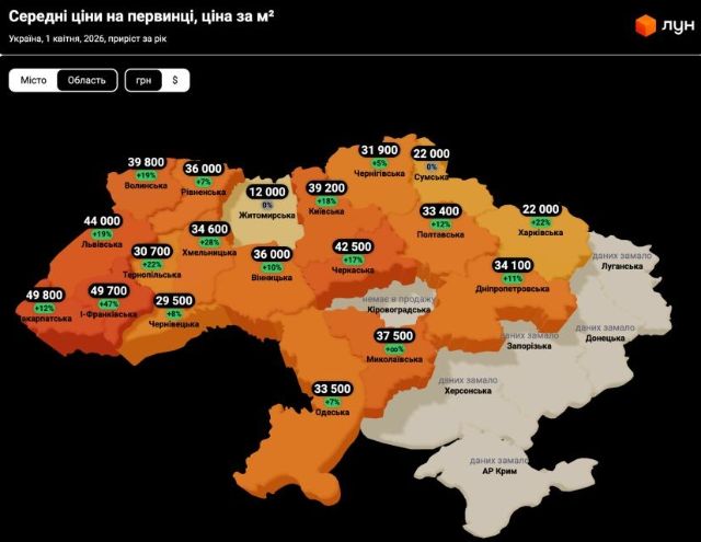 Значительно подорожали квартиры в новостройках в Харьковской области. Этот показатель – 22 тыс. грн. Рост – 22%.