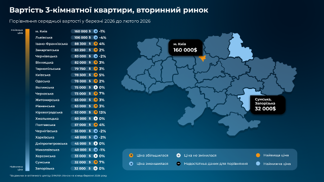 3-кімнатна квартира у Харкові в середньому коштує 48 000 доларів.
