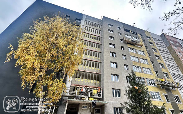 У багатоквартирному будинку на вулиці Наталії Ужвій у Харкові тривають масштабні відновлювальні роботи. Про це повідомила прес-служба Харківської міськради. Фахівці вже відремонтували 1,2 тис. кв. м покрівлі, встановили нові вікна у квартирах і місцях загального користування, а також замінили інженерні мережі в підвалі.