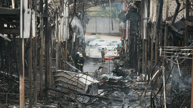 Виникла пожежа на ринку біля станції метро «Академіка Барабашова», внаслідок якої багато підприємців втратили майно – їх торгові павільйони повністю згоріли.За даними ДСНС, торгові павільйони горіли на площі 2800 кв. метрів.