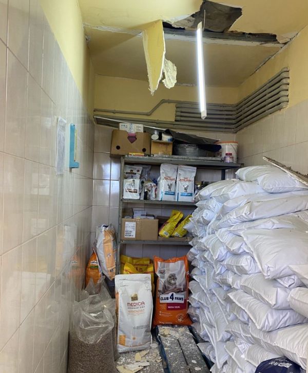 Основний удар припав на будівлю, де утримували котів, зокрема тих, які перебували на лікуванні після операцій. Вибуховою хвилею в приміщеннях вибило вікна, знесло стелю та пошкодило дах - за словами Марії Куценко, зараз він "як решето". Через пошкодження кліток перелякані тварини почали розбігатися по території та ховатися у завалах.