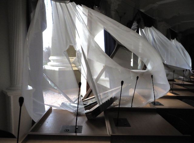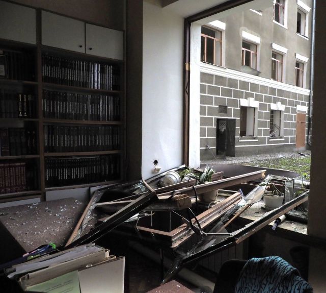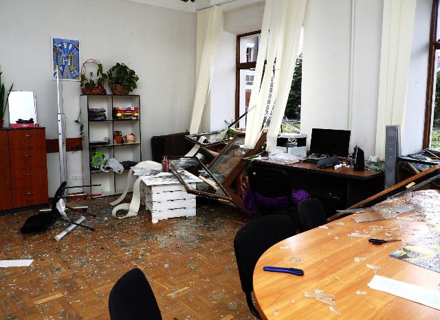 У будівлі вибито вікна, пошкоджено лавки знищено ялини, які росли на території навчального закладу.