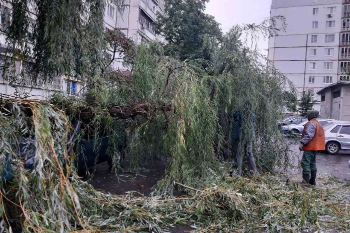 Бригади комунальних підприємств "Харківзеленбуд" і "Харківблагоустрій" прибрали з проїжджих частин і прибудинкових територій повалені дерева і великі гілки, а потім розпиляли їх.