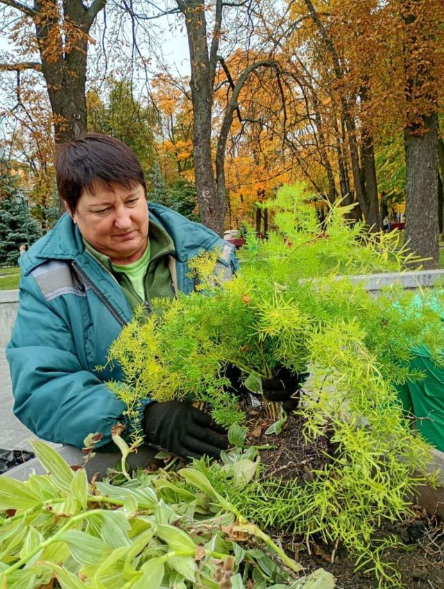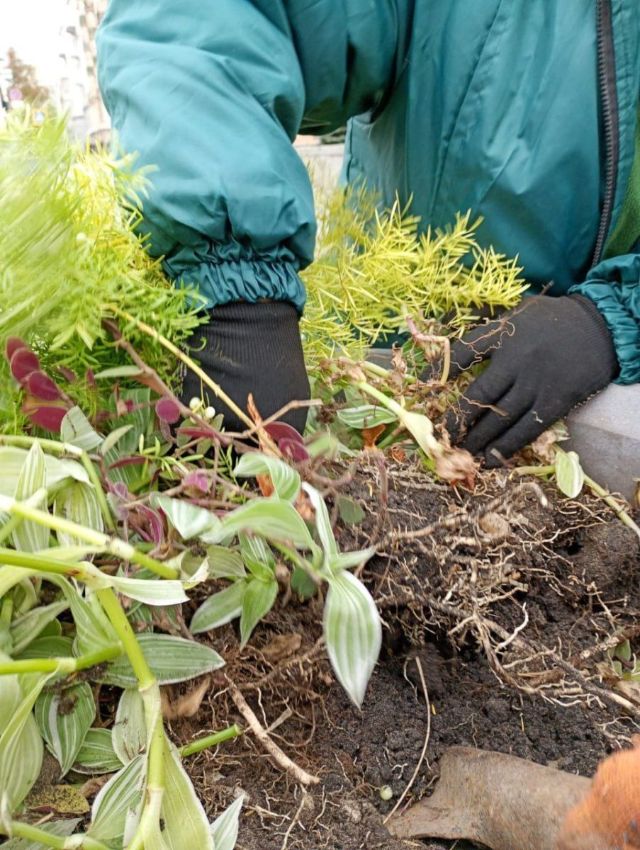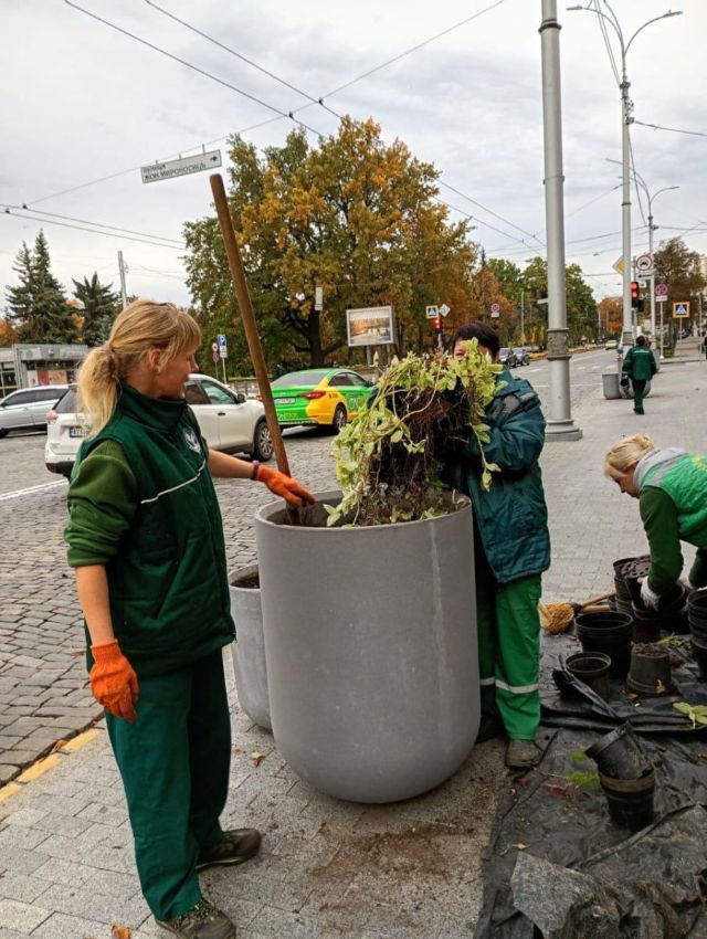 Озеленювачі прибирають з клумб та вазонів однорічні рослини (колеус, аспарагус, хлорофітум, традесканція, герань). Це необхідно для запобігання поширенню шкідників та хвороб, що можуть зимувати у відмерлій рослинній масі.