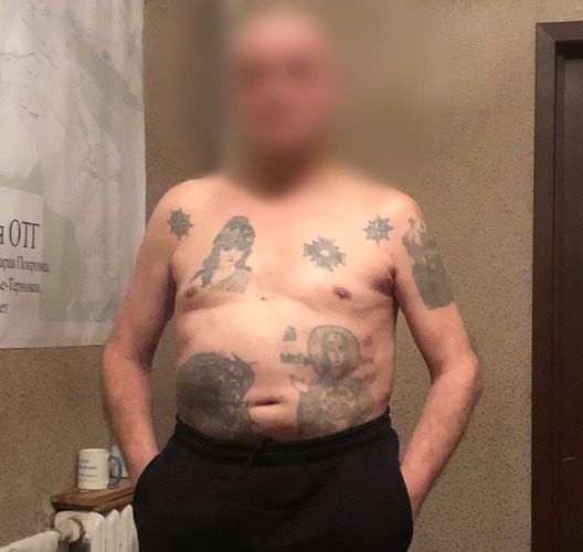 Судячи з фото, опублікованого поліцією, затриманий є кримінальним авторитетом, а можливо - злодієм у законі. Про це свідчать витатуйовані восьмикінцеві зірки під ключицями затриманого.