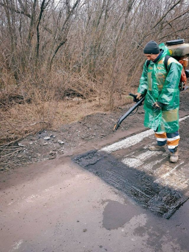 Ремонтні роботи виконуються кількома бригадами з використанням спеціалізованої техніки: дорожніх фрез, котків, а також термосів для транспортування та укладання асфальтобетонної суміші в умовах низьких температур.