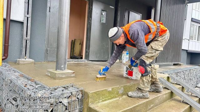 У Салтівському районі Харкова триває відновлення багатоквартирного житлового будинку, пошкодженого російськими обстрілами у березні 2022 року. про це у міськраді.