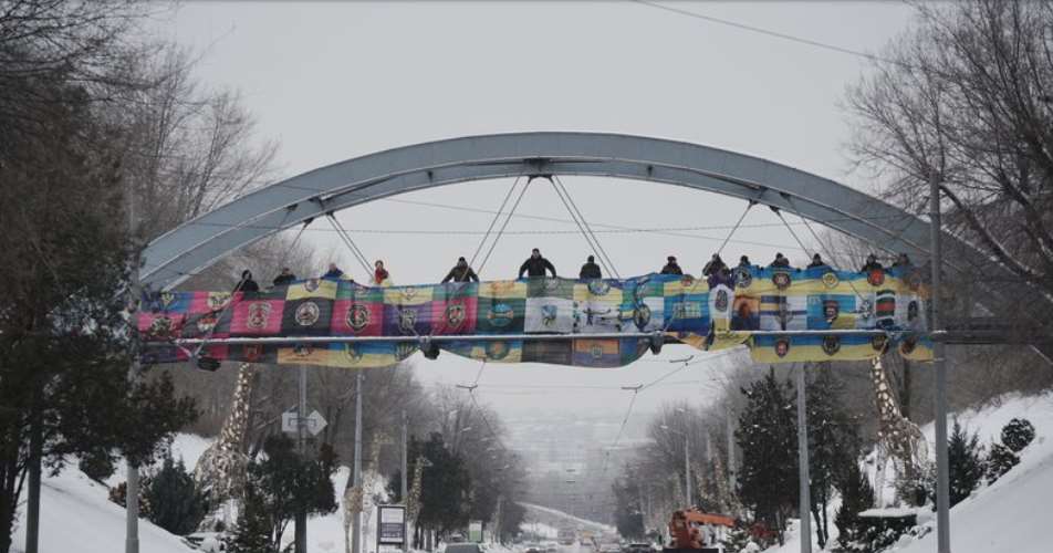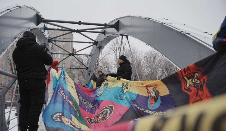 Сьогодні, 22 січня 2026 року, харків'яни на Зоологічному мосту провели акцію до Дня Соборності України. Учасники розгорнули прапор, зшитий із прапорів підрозділів та громадських організацій, які допомагають військовим. Про це Суспільне.