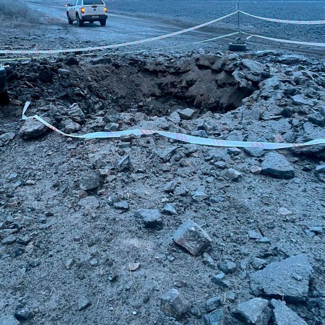 Унаслідок ракетного удару було утворено глибоку вирву. Пошкодження становило потенційну загрозу для безпеки дорожнього руху.