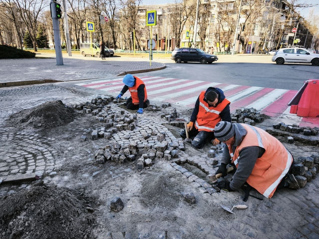 Працівники усувають просідання, зміцнюють основу бруківки, вирівнюють її. Про перекриття руху транспорту під час ремонту не повідомляється. Але неподалік перекрита частина вул. Культури, там ремонтують дорогу. SQ писав про те, як об'їхати цю ділянку.