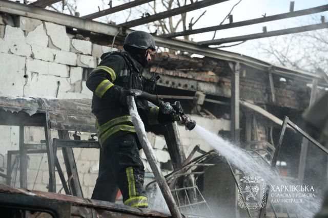 Вибухами пошкоджено будівлі цивільного підприємства, гаражі та транспорт. На одному з місць влучання виникла пожежа, площа якої, за попередніми даними, становить близько 100 квадратних метрів.