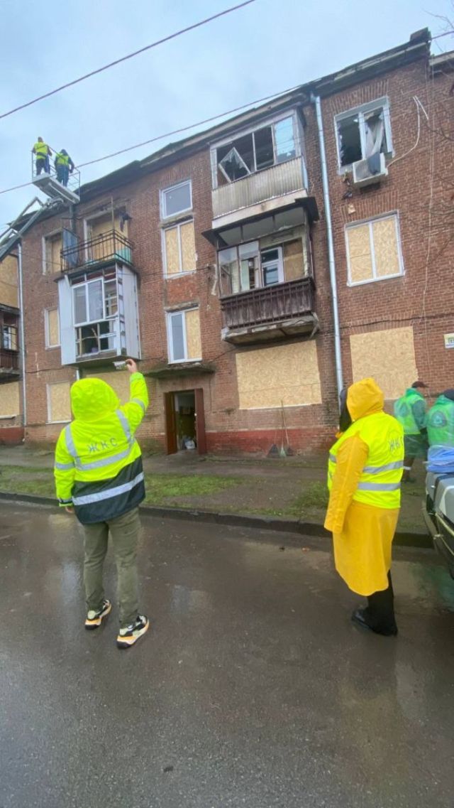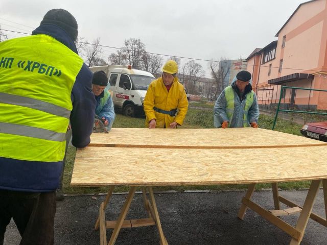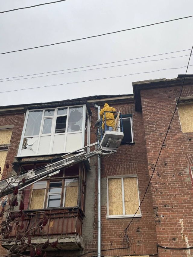 Станом на 12:00 було закрито понад 60% вікон та 85% балконних склінь. Працівники КП «Харківське ремонтно-будівельне підприємство» продовжують закривати контури.